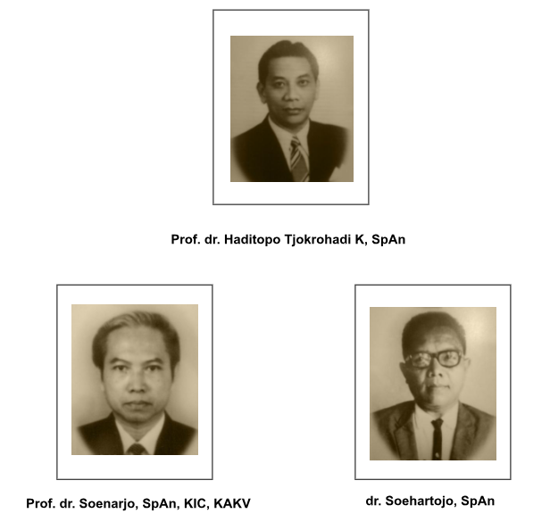 Officially, the education of Anesthesiology Specialists in Semarang began in 1974, with Dr. Haditopo, Dr. R. Suhartojo, and Dr. Soenarjo as the pioneers of anesthesiology specialist education in Semarang. At that time, the education of Anesthesiology Specialists was still regulated by the Professional Organization (Indonesian Anesthesiology Association). The Head of the Study Program was held by Dr. Soenarjo (1978–1994 and 1998–2004), Dr. Marwoto (1995–1998), Dr. Uripno Budiono (2005–2009), Dr. M. Sofyan Harahap (2009–2018), and Dr. Taufik Eko Nugroho (2019–present).